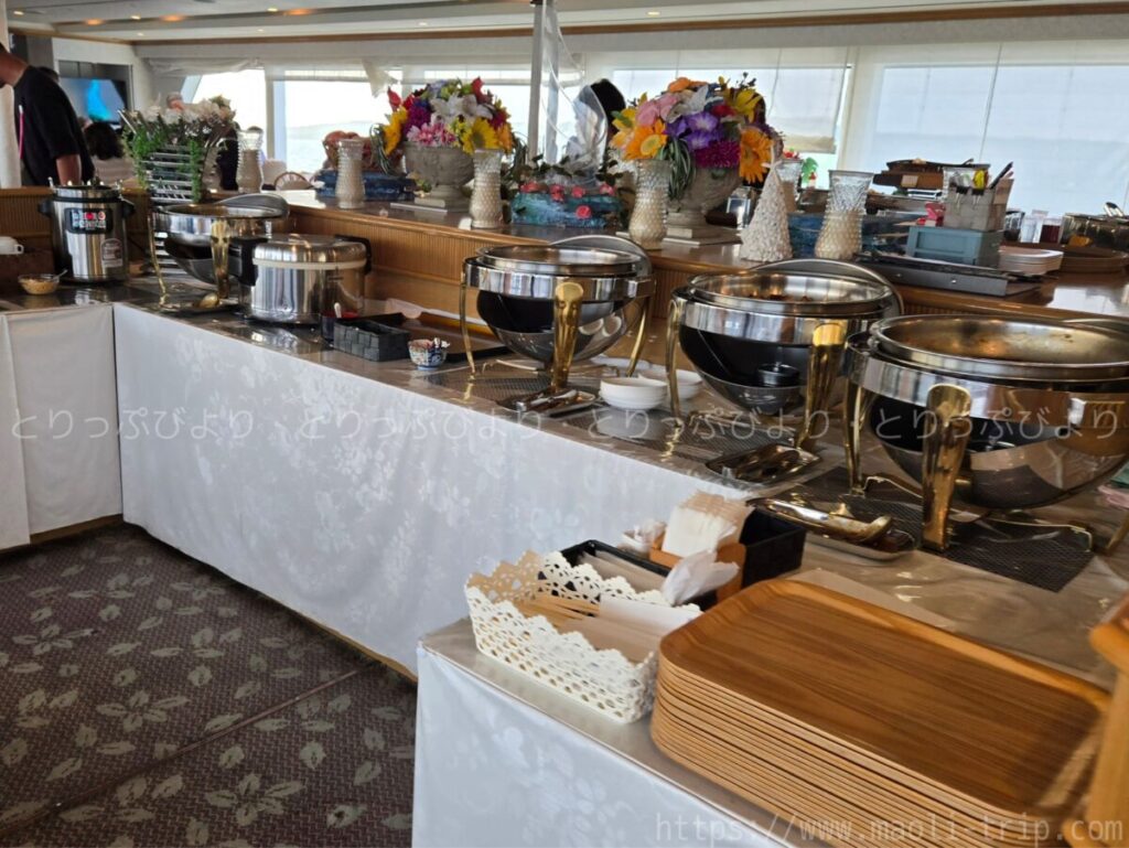 - この説明終了後(船が動き出す前)から料理を取りに行ける