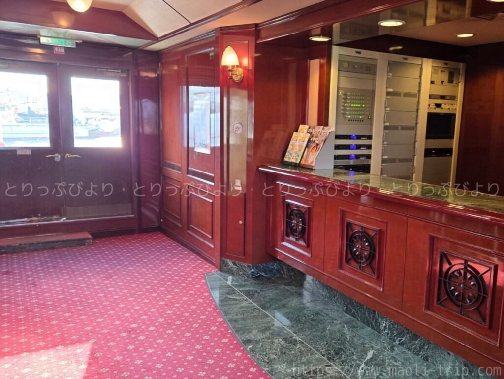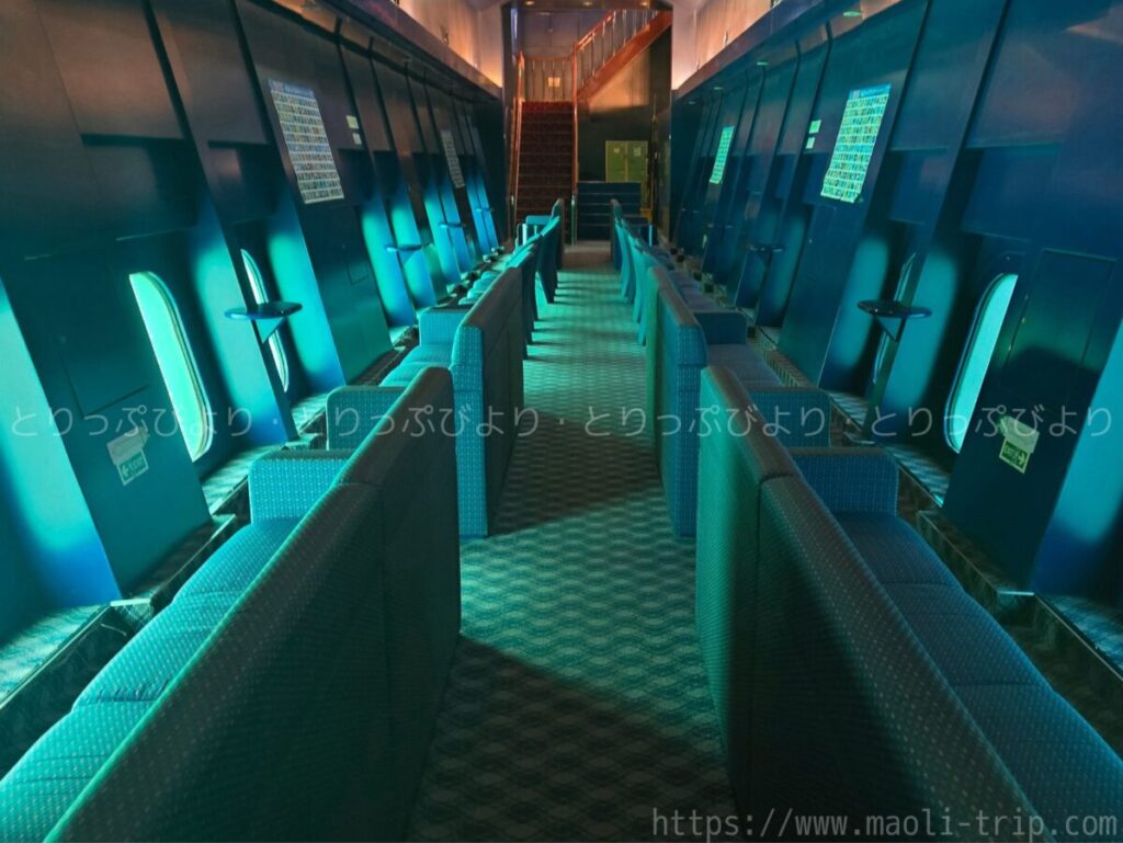 地下1階のアクアラウンジから3階のスカイラウンジまである客船となっています。