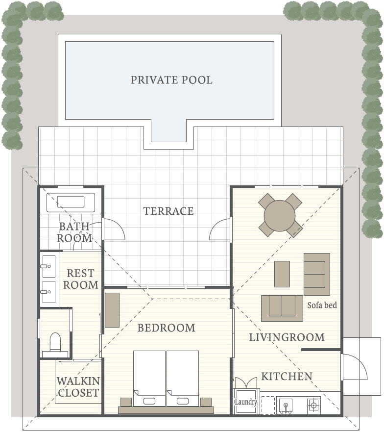 魅力的な部屋がたくさんある中、我が家が今回選んだのはエグゼクティブプールビラハウスのミニキッチンタイプ