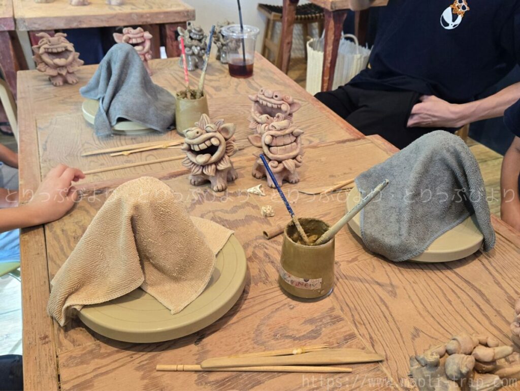 こじんまりとした工房だけどテーブルは広々使えて、シーサー作りとともに家族の楽しい思い出も作ることができました。