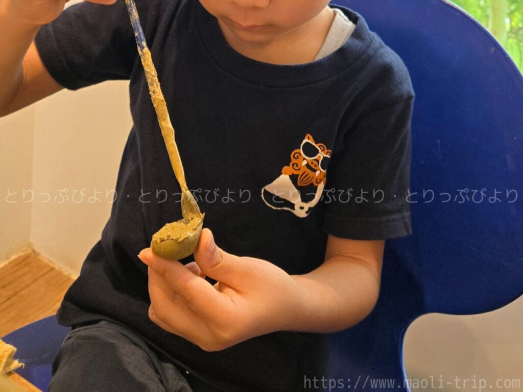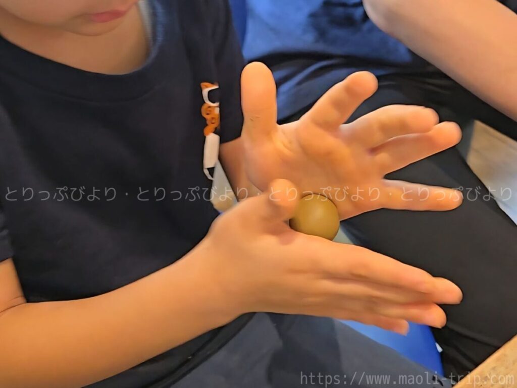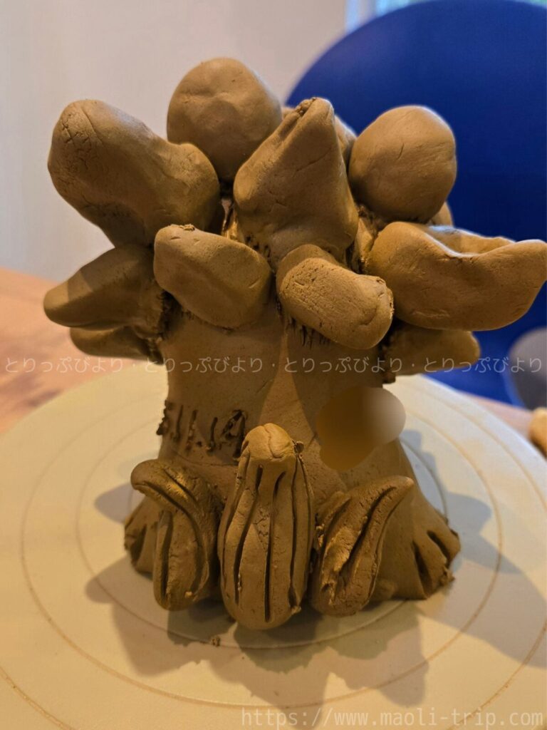 色を塗るだけの体験とは違い、一から粘土をこねて作り上げる本格的なスタイルに、子どもたちは1時間半以上も席を立たずに没頭