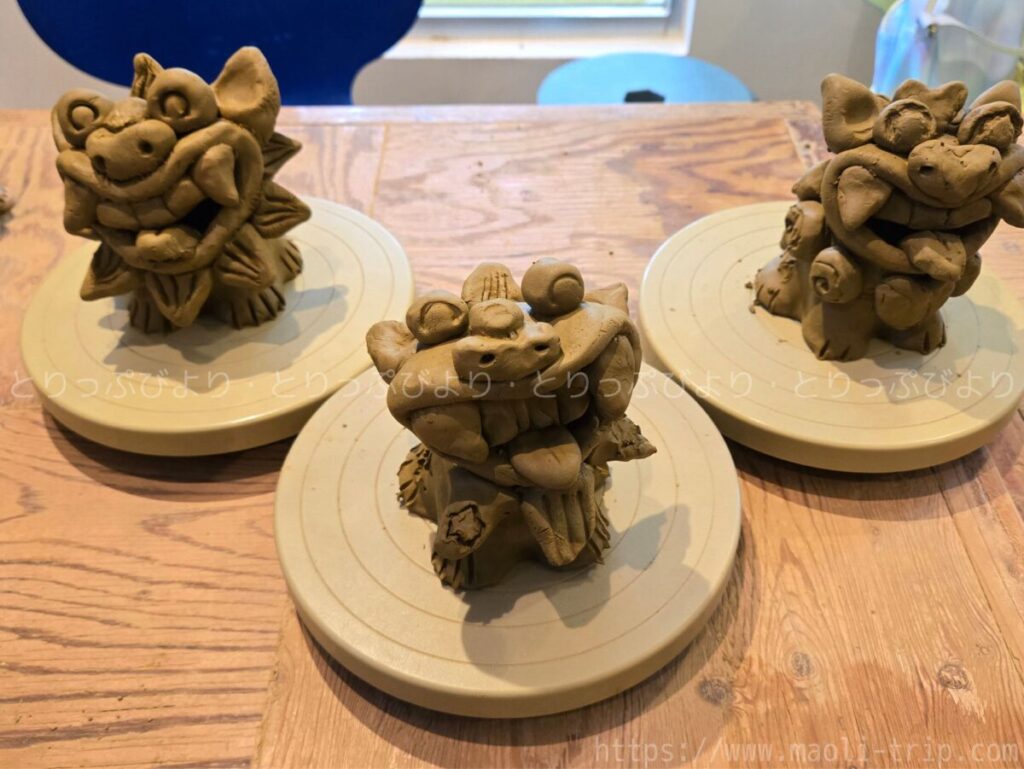 このシーサーたちは、ここから乾燥させ、焼いてから完全な出来上がりということで、約1ヶ月後に郵送で送っていただきます
