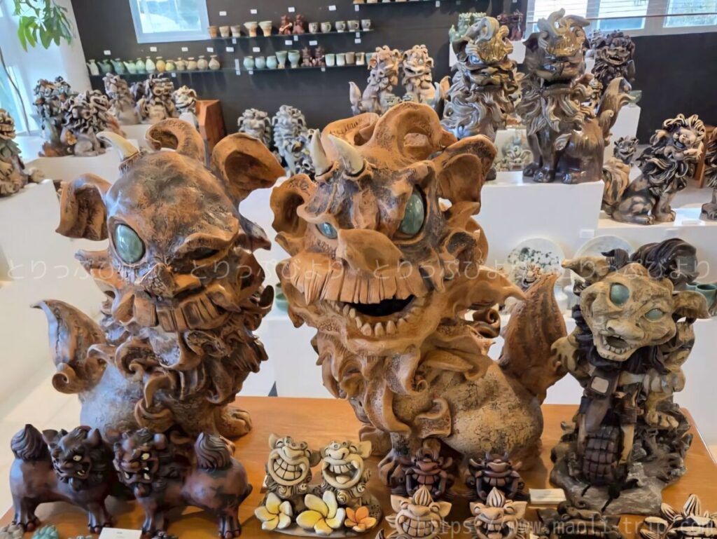 中に入ると、たくさんのシーサーがお出迎えしてくれます。